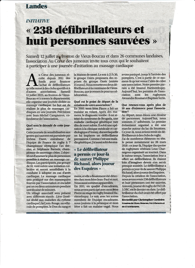 Faites un dont pour « Au coeur des jumeaux » et soutenez notre action pour l'installation de défibrillateurs dans les enceintes sportives...