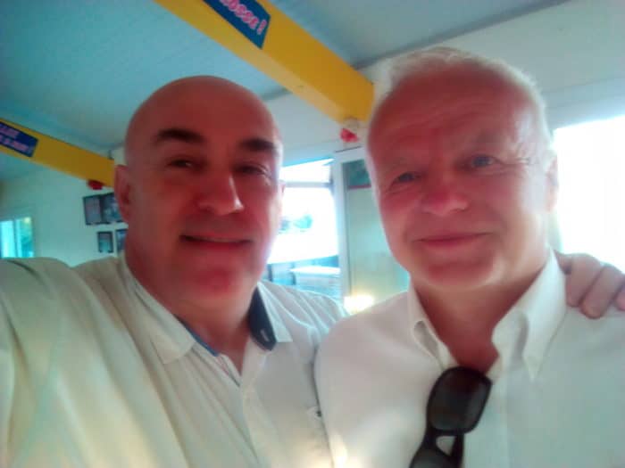 Rene MARTIENS avec le miracule PH RICHAUD qui a ete sauve par le defibrillateur offert 1/2 h avant au club des Charneguous a Dax